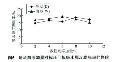 2.1.4角蛋白改性劑對吸水厚度膨脹率的影響